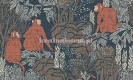 Nowoczesna tapeta z rudymi małpkami wśród drzew na ciemnym granatowym tle