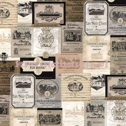 Tapeta z butelką wina i białymi napisami na beżowym tle
