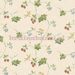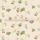 Tapeta z poziomkami, jagodami, kwiatkami na beżowym tle
