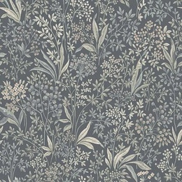 Tapeta 2024 w skandynawskim stylu liście kwiatki szaroniebieske na ciemnym tle