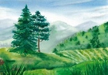 Fototapeta 14068 - Akwarelowy Las Drzewa