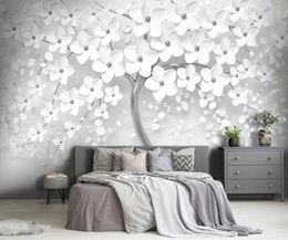 Fototapeta 14215 Srebrne drzewo i białe kwiaty