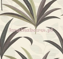 Tapeta Art Déco liście palmy brązy zielenie na kremowym tle