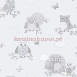 Tapeta kolorowe sowy na gałązkach na kremowym tle