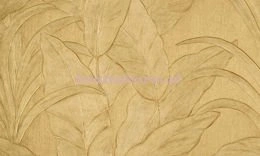 Modna tapeta z dużymi liśćmi z wyczuwalnym wzorem złocista