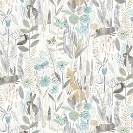 Tapeta dla dzieci 112634 na wesołej łące motyle, lisy zajace