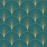 Tapeta 139230 Art Deco wachlarze turkusowy i złoty
