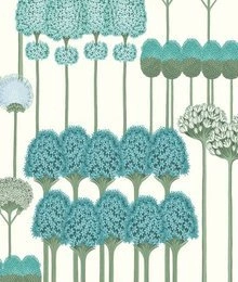 Tapeta 115/12035 Allium Kwitnące kwiaty niebiesko zielone na jasnym tle