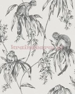 Oryginalna tapeta małpki wśród liści dżungla czarno szara