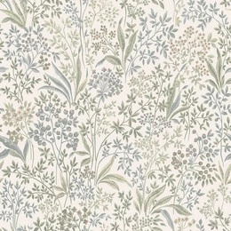 Tapeta 2023 w skandynawskim stylu liście kwiatki szarozielona