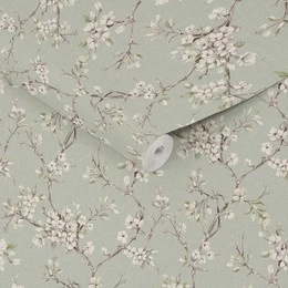 Tapeta 116630 delikatne kwiaty gałązki na tle w morskiej zieleni