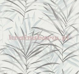 Luksusowa tekstylna naturalna tapeta w liście palmy w szarościach i błekitach