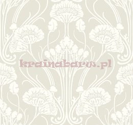 Tapeta Art Déco Kwiatowy Ornament biały na bezowym tle