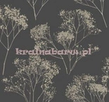 Tapeta botaniczna z gałązkami drobnych beżowych kwiatów na grafitowym tle