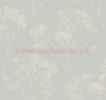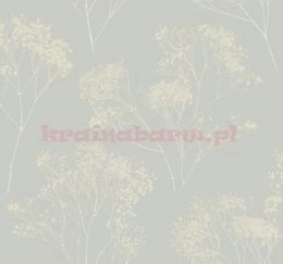 Tapeta botaniczna z gałązkami drobnych jasno szarych kwiatów na połyskującym kremowym tle