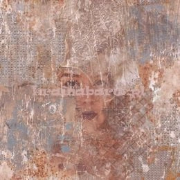 Tapeta betonowa ściana kolaż twarz kobiety w spokojnych fioletach