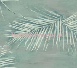 Romantyczna tapeta z wzorem liści palmy z metalicznym akcentem w turkusach