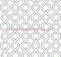 Tapeta z geometrycznym niebieskim wzorem na białym tle.