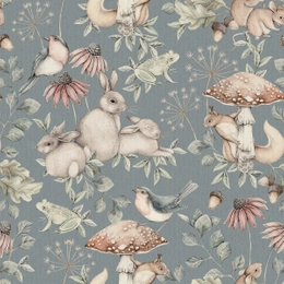Tapeta w skandynawskim stylu 7483 zajączki wiewiórkigrzybki