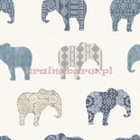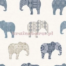 Tapeta wesołe słonie z etnicznymi wzorkami granatowe beżowe