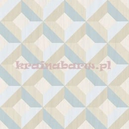 Tapeta geometryczna trójkąty romby z niebieskim i beżem