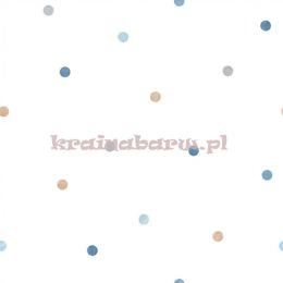 Nowoczesna tapeta kropki groszki niebieskie szare beżowe na białym tle