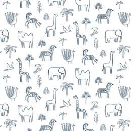 Tapeta dla dzieci 112629 Afryka słonie zebry żyrafy białe na szarobeżowym tle