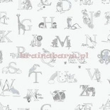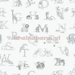 Tapeta wesoły alfabet zwierzątka w szaro beżowych odcieniach na białym tle