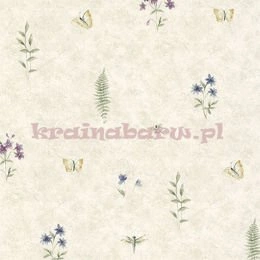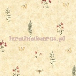 Tapeta w kwiatki, motylki, pszczółki na beżowym tle