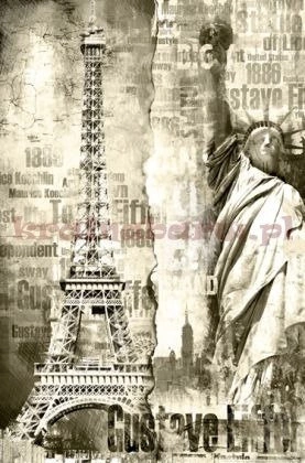 paryż, nowy jork, new york, wieża eiffla, statua wolności, sepia, litery