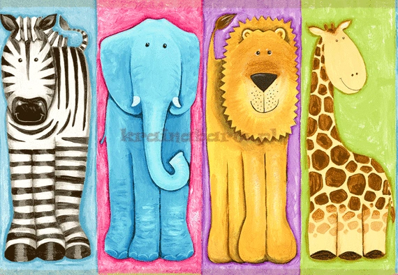 zwierzęta, lew, słoń, żyrafa, zebra
