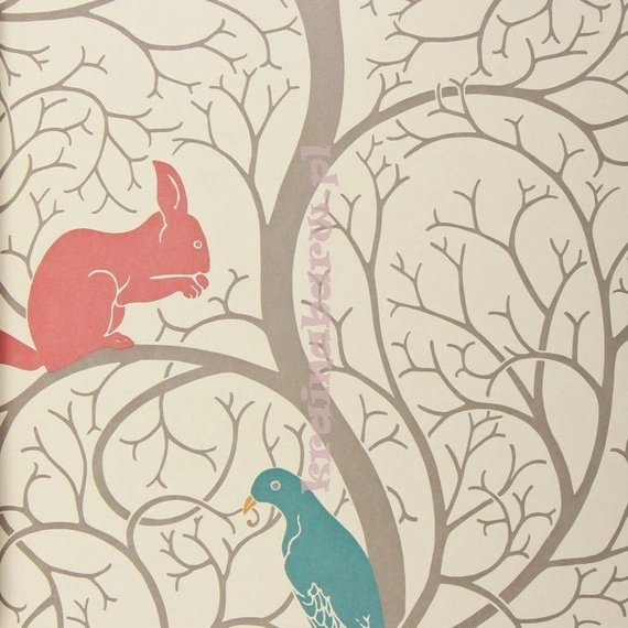 - ptaki, wiewiórki, czerwony, turkusowy, beżowy, brązowy