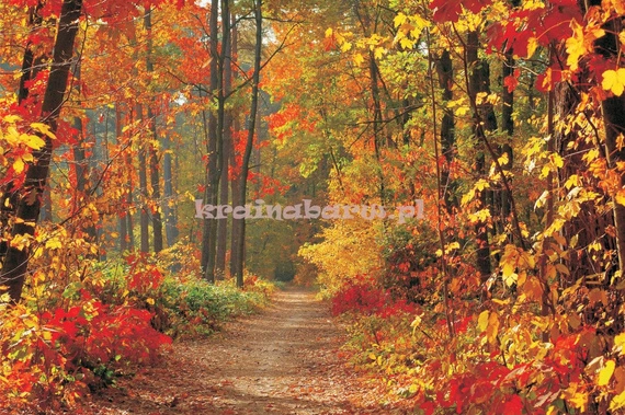 • Park, alejka, jesień, las, drzewa, liście