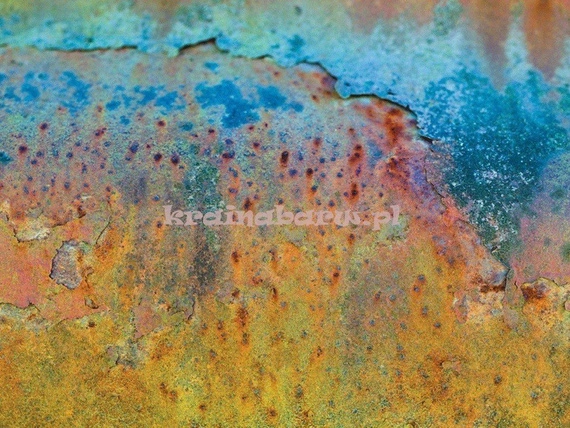 - metal, utleniony, blacha, farba, korozja, niebieski, żółty
