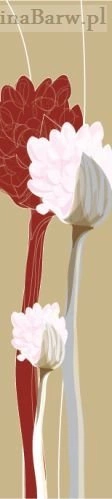 Samoprzylepny panel o wymiarach: wysokość 260cm, szerokość 60cm , z nowoczesną grafiką przedstawiającą imponujące duże kwiaty w kolorze ciemnej czerwieni, rozbielonego różowego oraz szarego akcentu na łodydze. Wzór umieszczony jest na tle w odcieniu oliwkowej zieleni. Wysmakowane kolory, modna grafika to szybki i łatwy sposób na odmianę Twojego wnętrza i stworzenie w nim oryginalnego i eleganckiego klimatu.