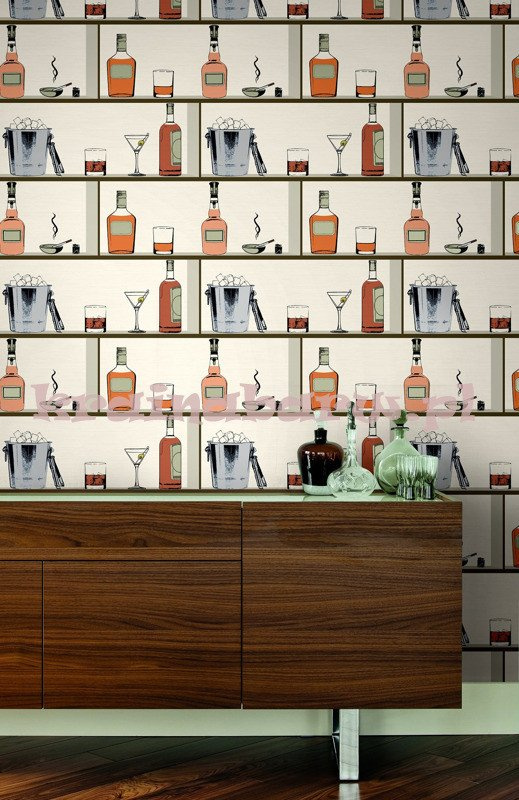 - vintage, drink, drinki, butelki, kieliszki, bar, półka, półki, szary, srebrny, brązowy, kredowy, bordowy
