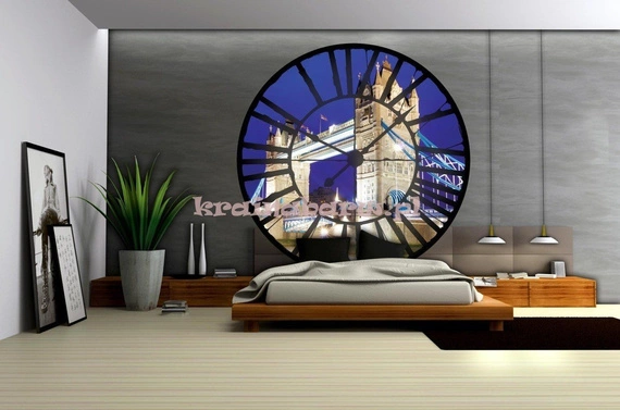 - Okrągła fototapeta na flizelinie WIDOK PRZEZ ZEGAR