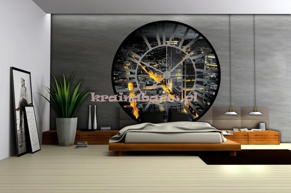 - Okrągła fototapeta na flizelinie WIDOK PRZEZ ZEGAR