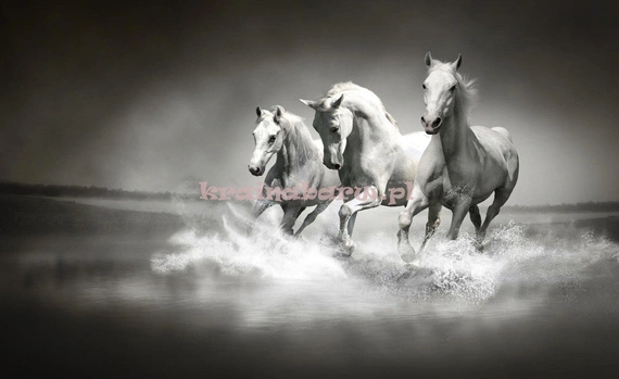 Fototapeta 426 CZARNO BIAŁE GALOPUJĄCE KONIE