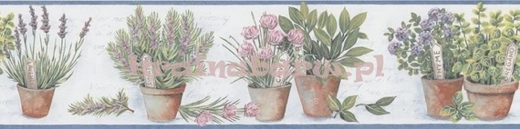 - border, pasek, zioła, kwiaty, doniczki, zielony, niebieski jasny, błękitny