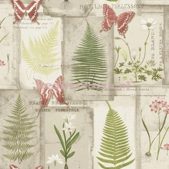 - papier, paprotka, paprotki, kwiaty, motyle, motyl, listy, beżowy, zielony, czerwony. zieleń