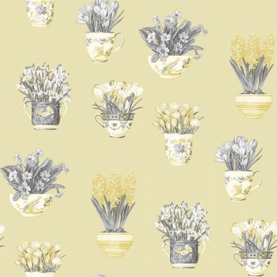 - kwiaty, kwiatki, wazon, szklanka, filiżanka, żółty, szary