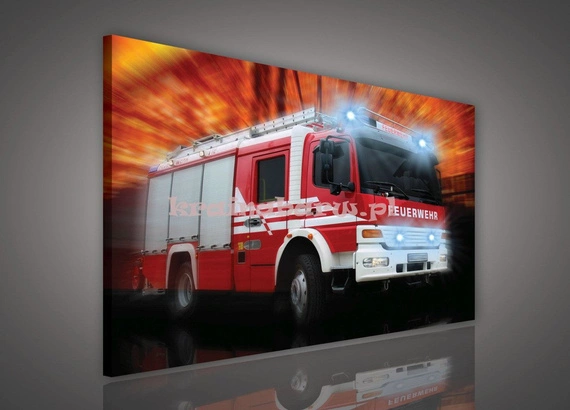 Obraz na płótnie PP1501 wóz strażacki- płomienie
