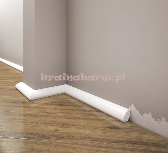 Listwa przypodłogowa lakierowana na biało.