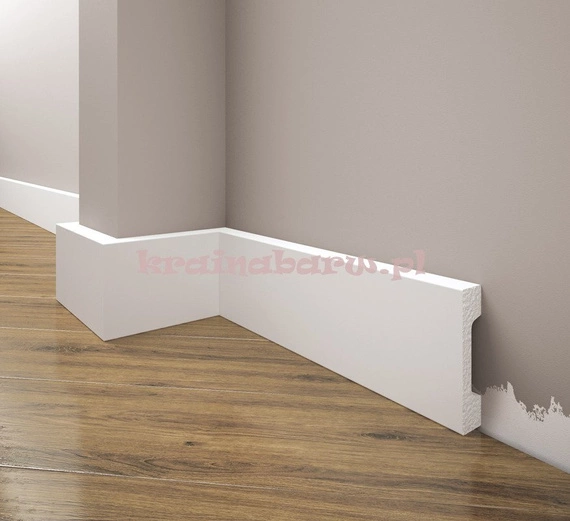 Listwa przypodłogowa lakierowana na biało.