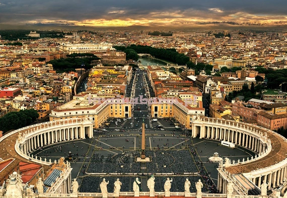 Piękny widok Watykanu ze słynnym placem św. Piotra, panoramą Rzymu.