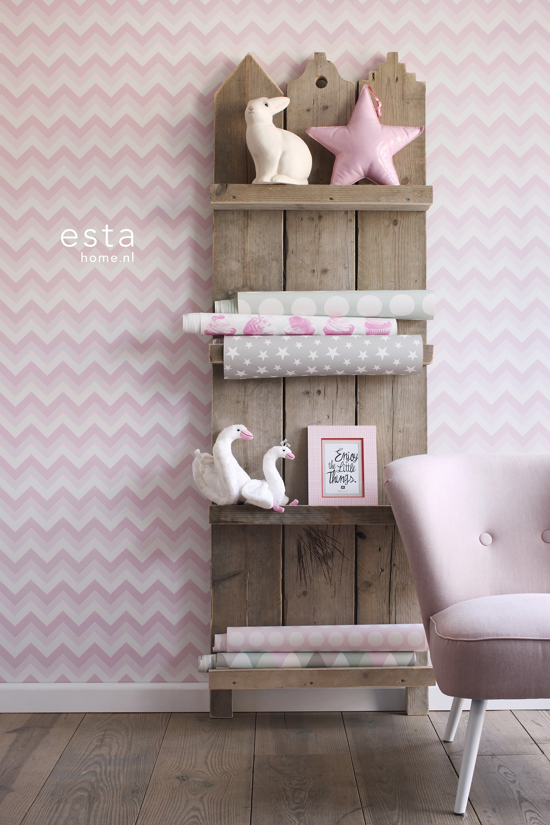 Tapeta w różowe zygzaki. Doskonała do pokoju dziewcznyki.