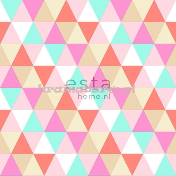 Tapeta w wielokolorowe trójkąty w różowej tonacji. Tapeta idealna do pokojów dla dziewczynek