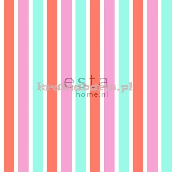 Tapeta w pastelowe, wielokolorowe paski. Doskonała do pokojów chłopców i dziewczynek.