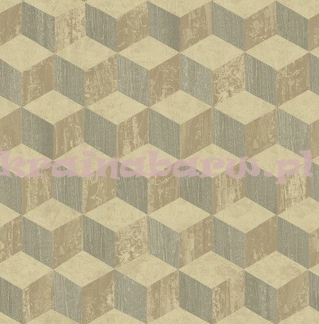 Wzór Cubes. Tapeta w połyskujące kostki. Ma zróżnicowaną fakturę. Kolor starego złota.